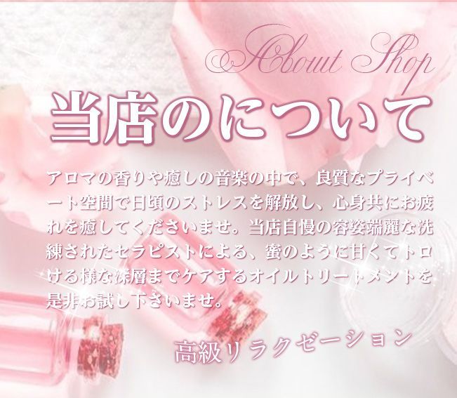 お店の雰囲気は、お客様が落ち着いて施術を楽しんでいただけるよう、暖かい照明が店内を照らしています。心落ち着く音楽で、お客様をお迎えいたします。施術はマッサージが中心です。疲れた体を癒すなら、当店へぜひ一度足をお運び下さいませ。皆様のお越しを心よりお待ちしております。